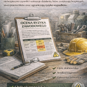 Ocena ryzyka zawodowego to dokument określający zagrożenia występujące na danym stanowisku pracy oraz poziom ryzyka z nimi związany. Jej celem jest identyfikacja czynników niebezpiecznych, szkodliwych lub uciążliwych oraz wskazanie działań, które pomagają ograniczyć ryzyko wypadków i chorób zawodowych.
